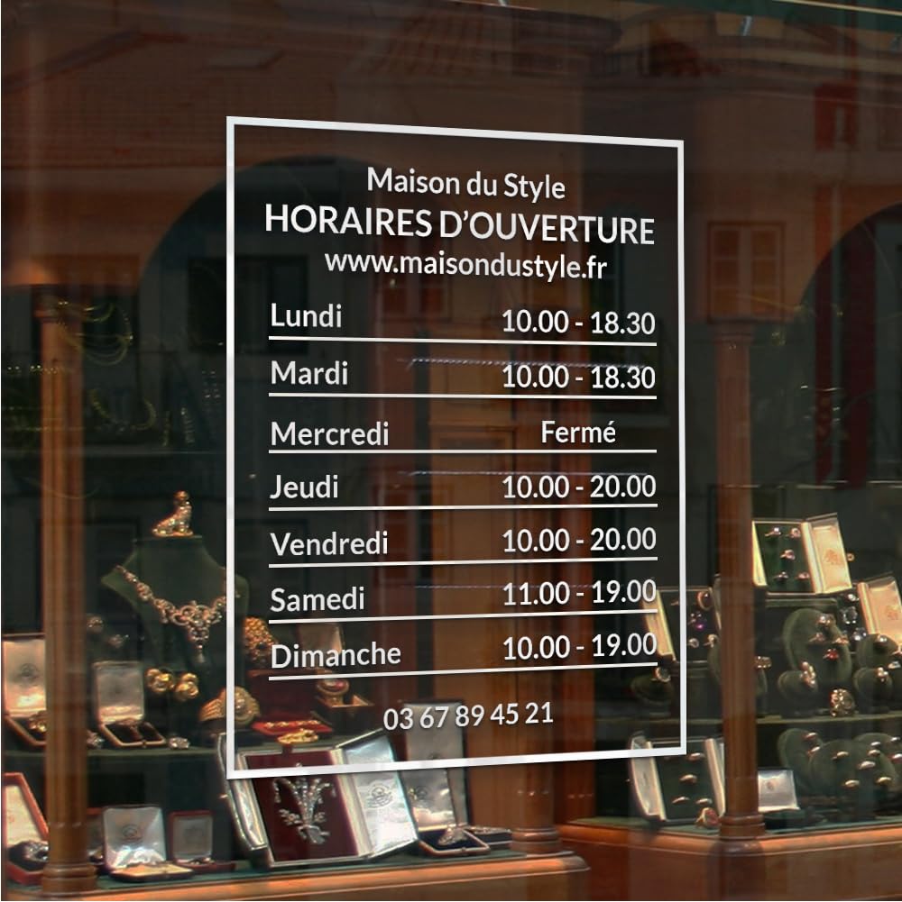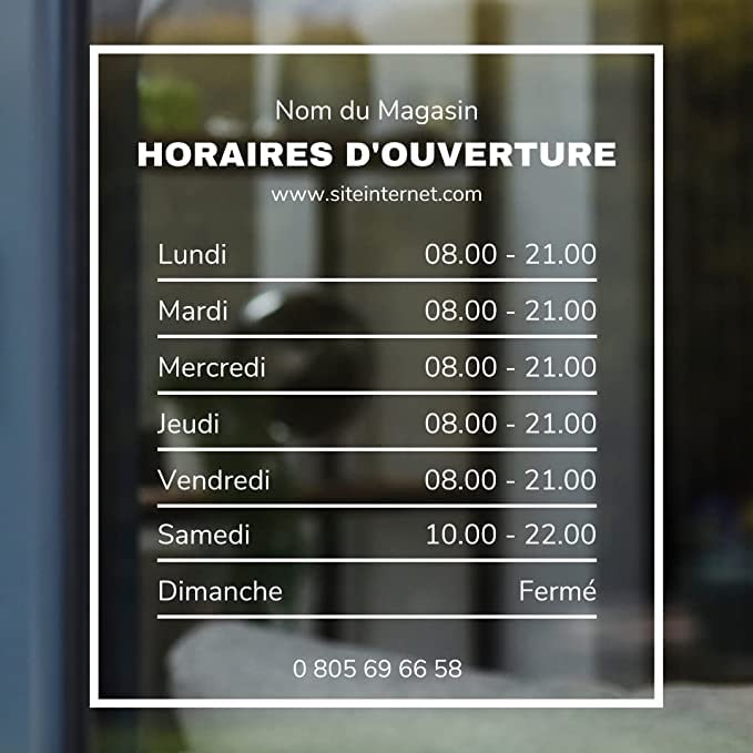Autocollant sticker horaires vitrine magasin personnalisé - Design 1