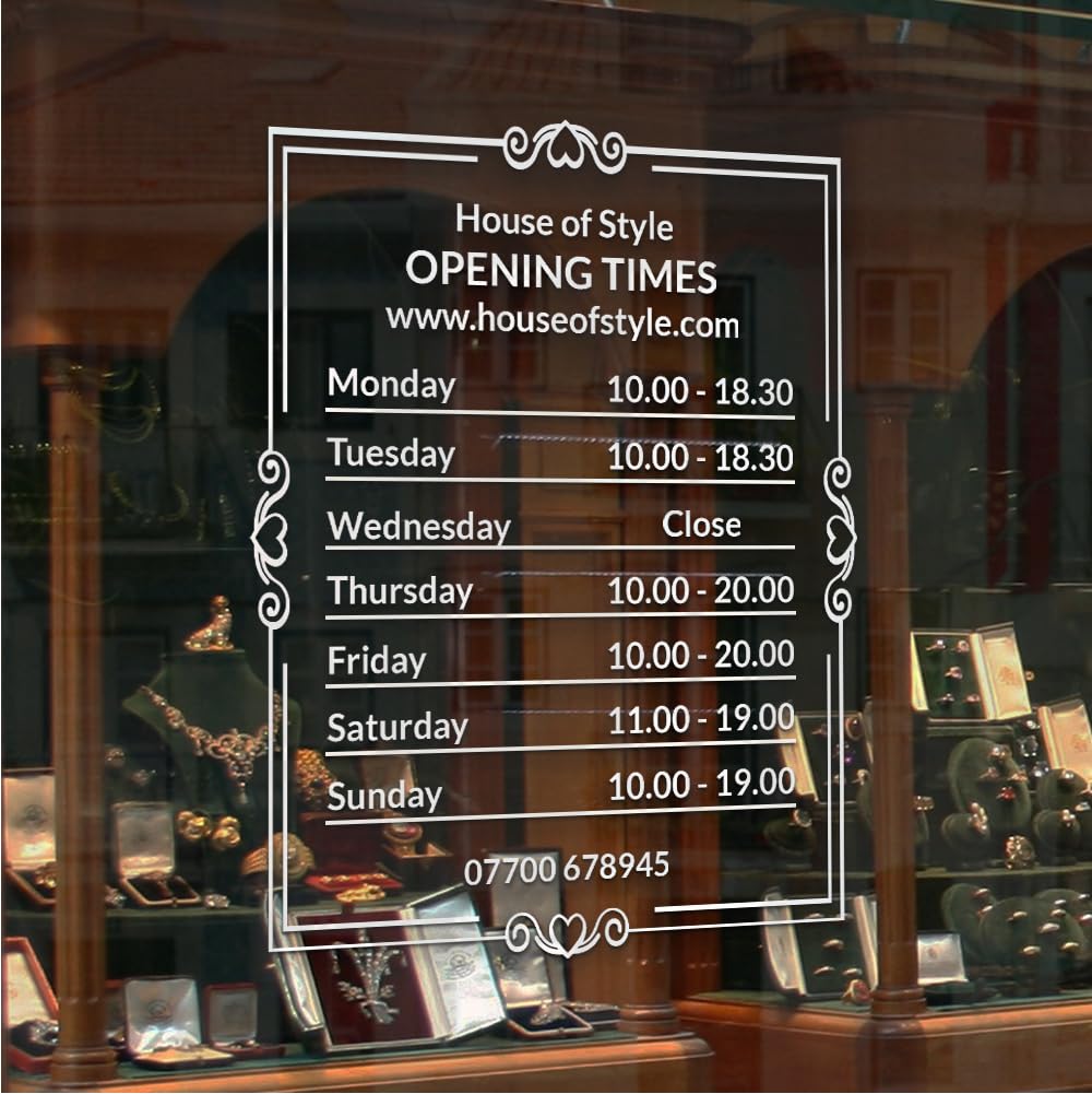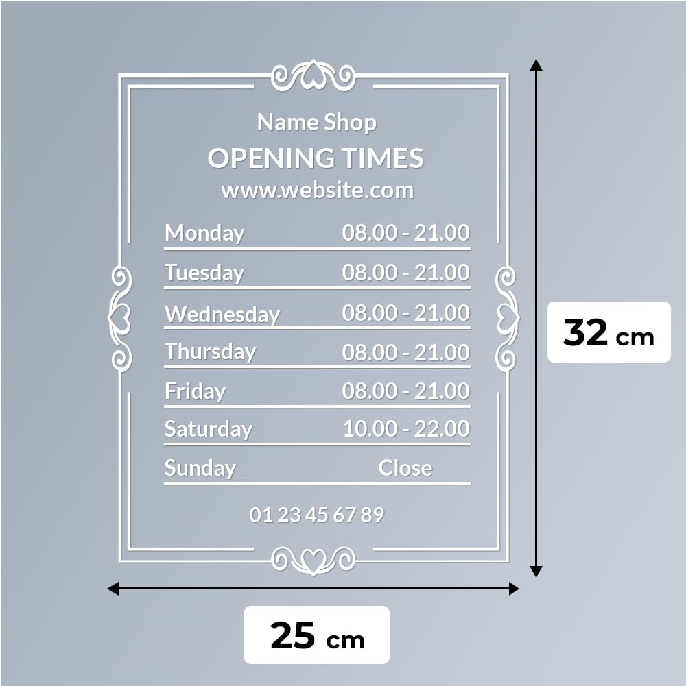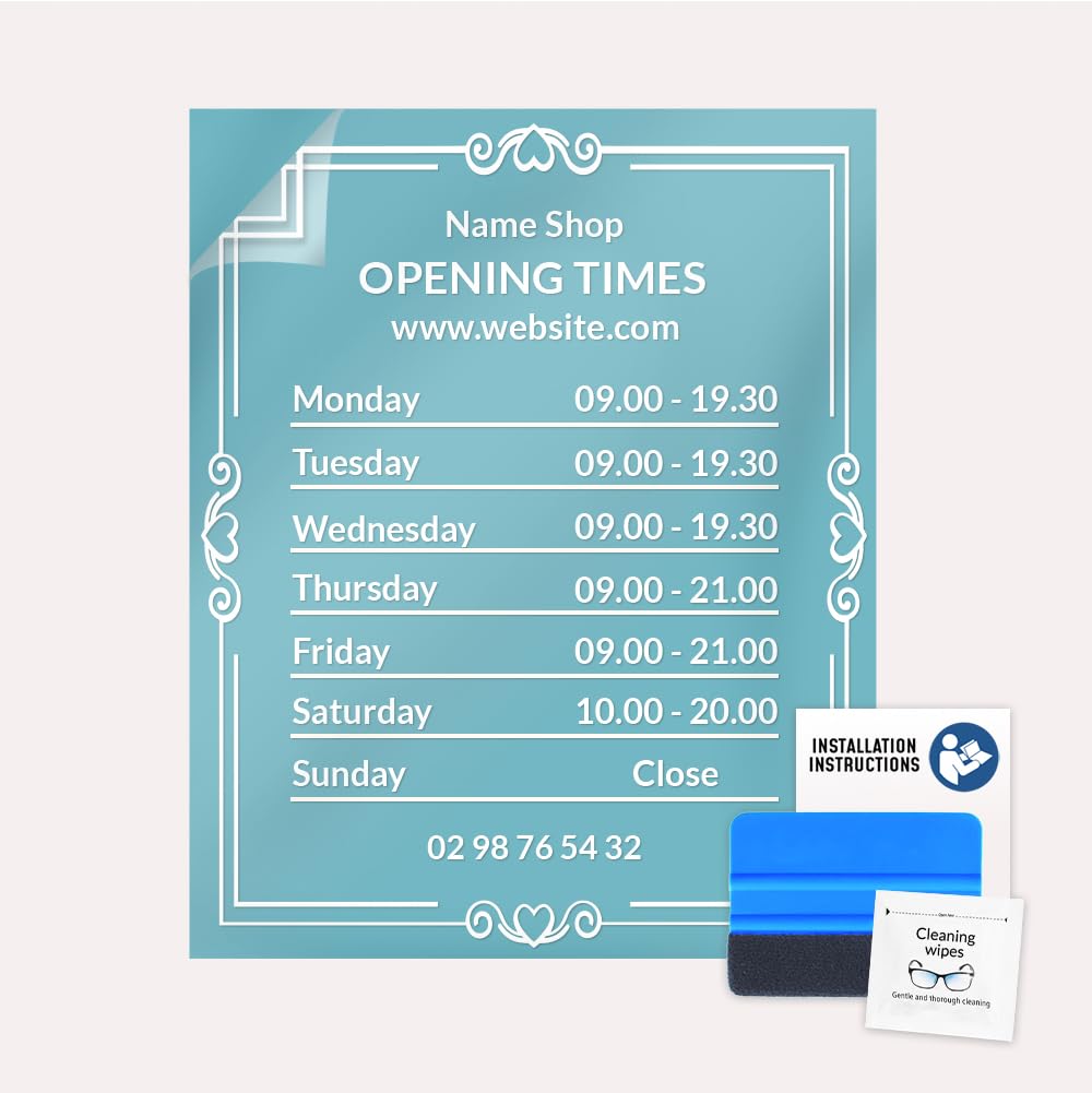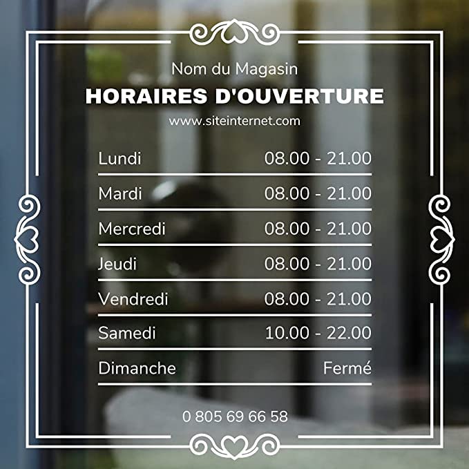 Autocollant sticker horaires vitrine magasin personnalisé - Design 3