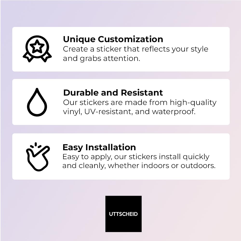 - Durabilité garantie : Notre autocollant résistant est conçu pour durer, même en extérieur, assurant ainsi une utilisation à long terme.