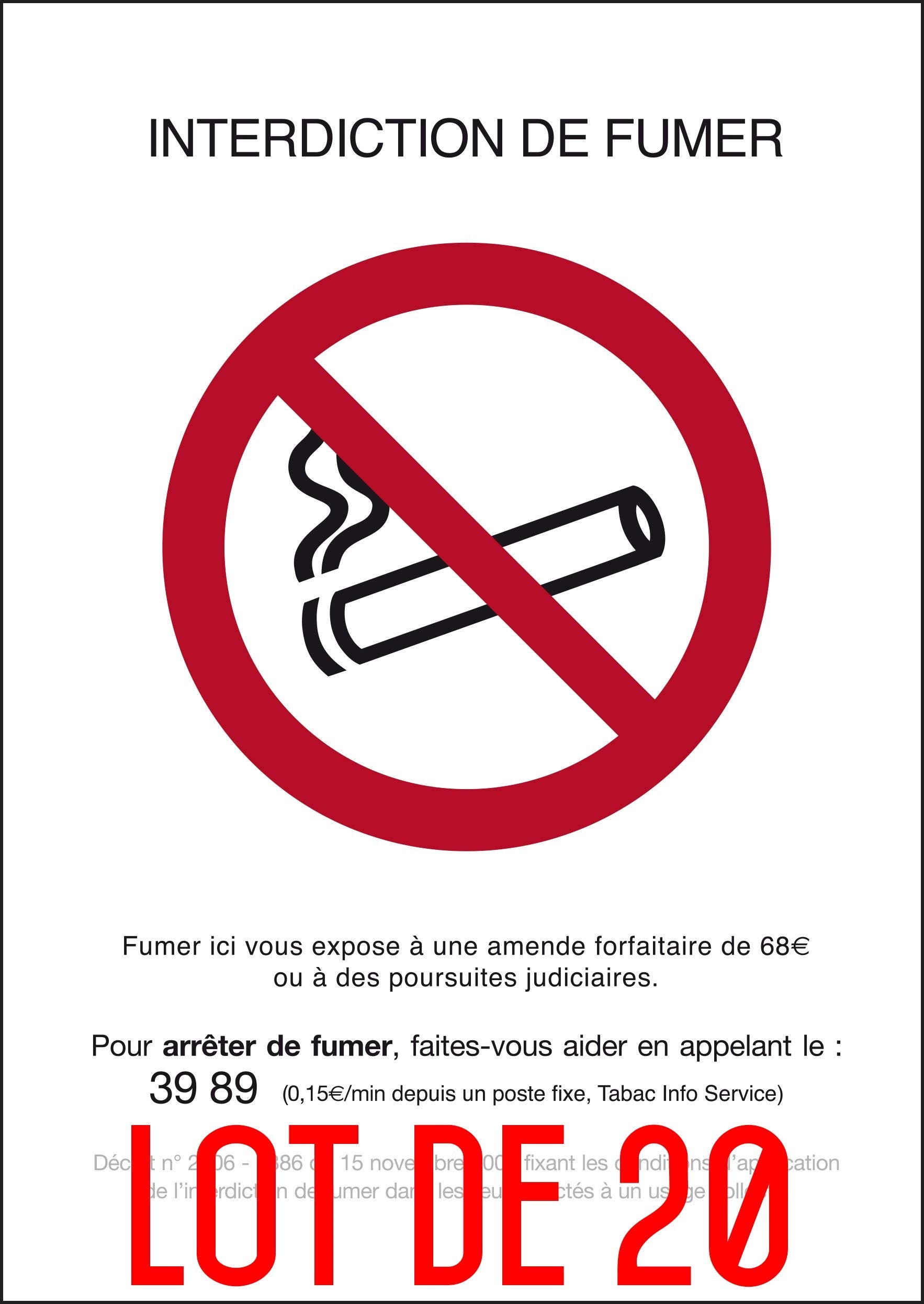 Autocollant vinyl - Interdiction interdit de fumer rectangle - L.148 x H.210 mm - 20