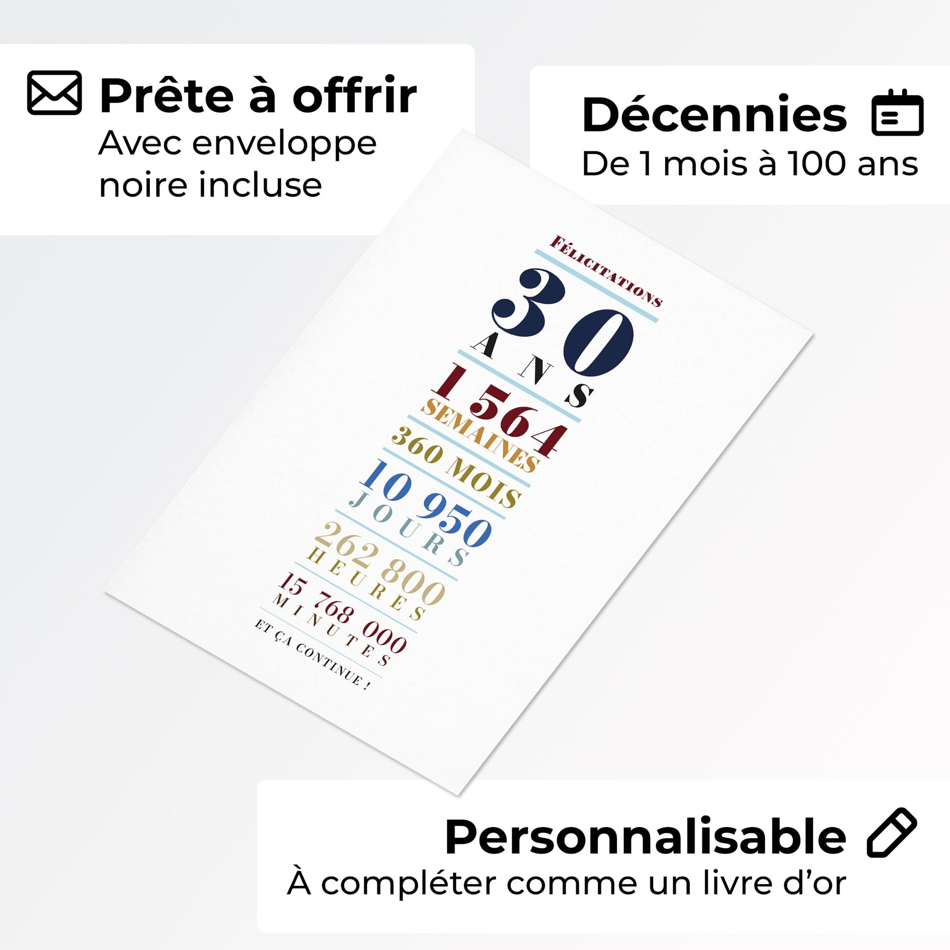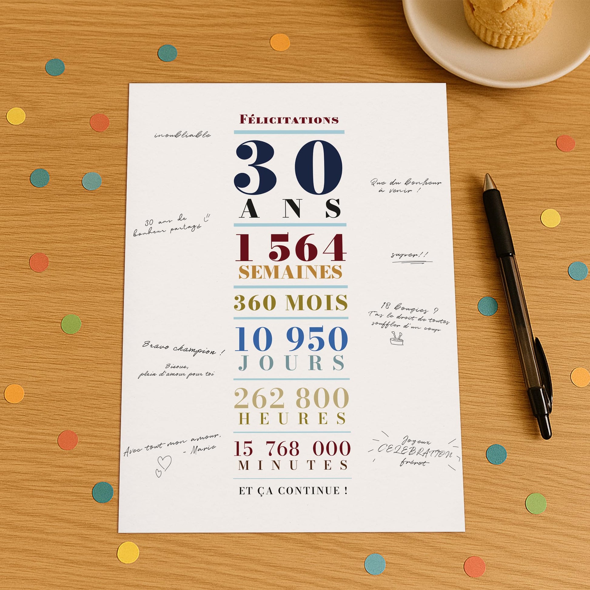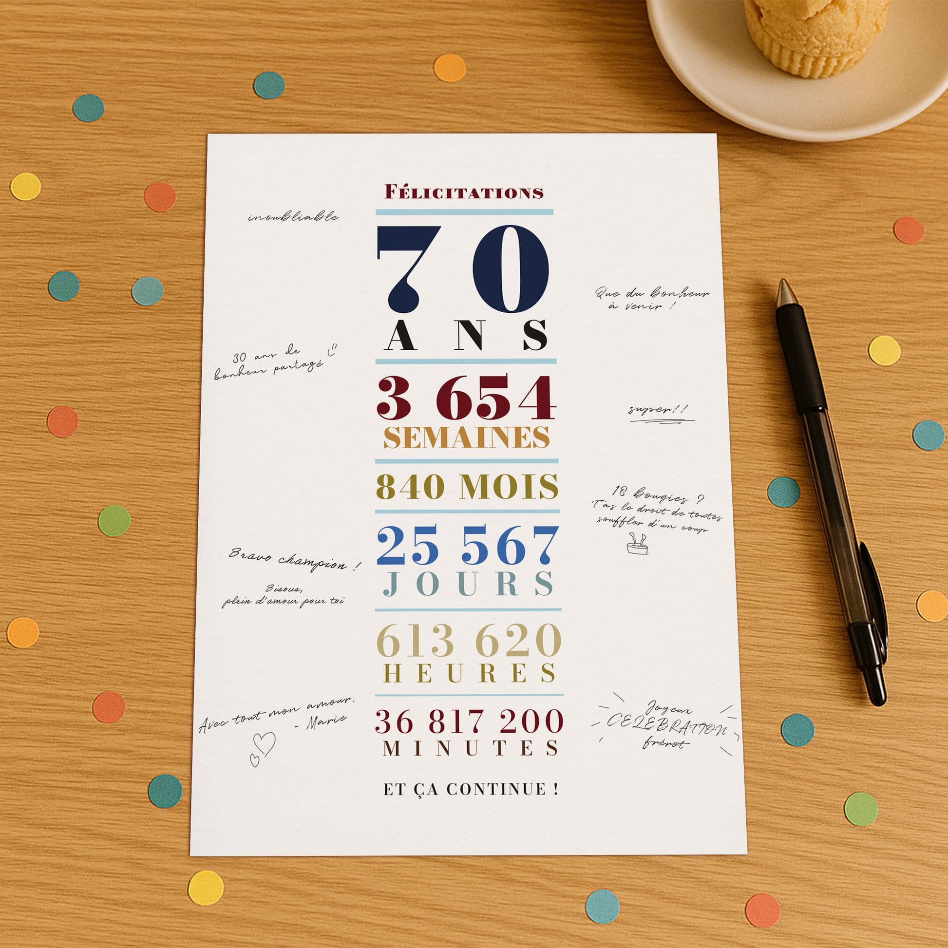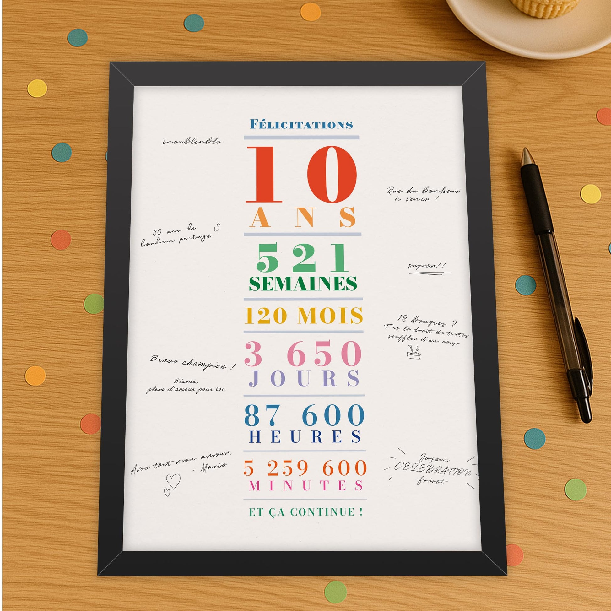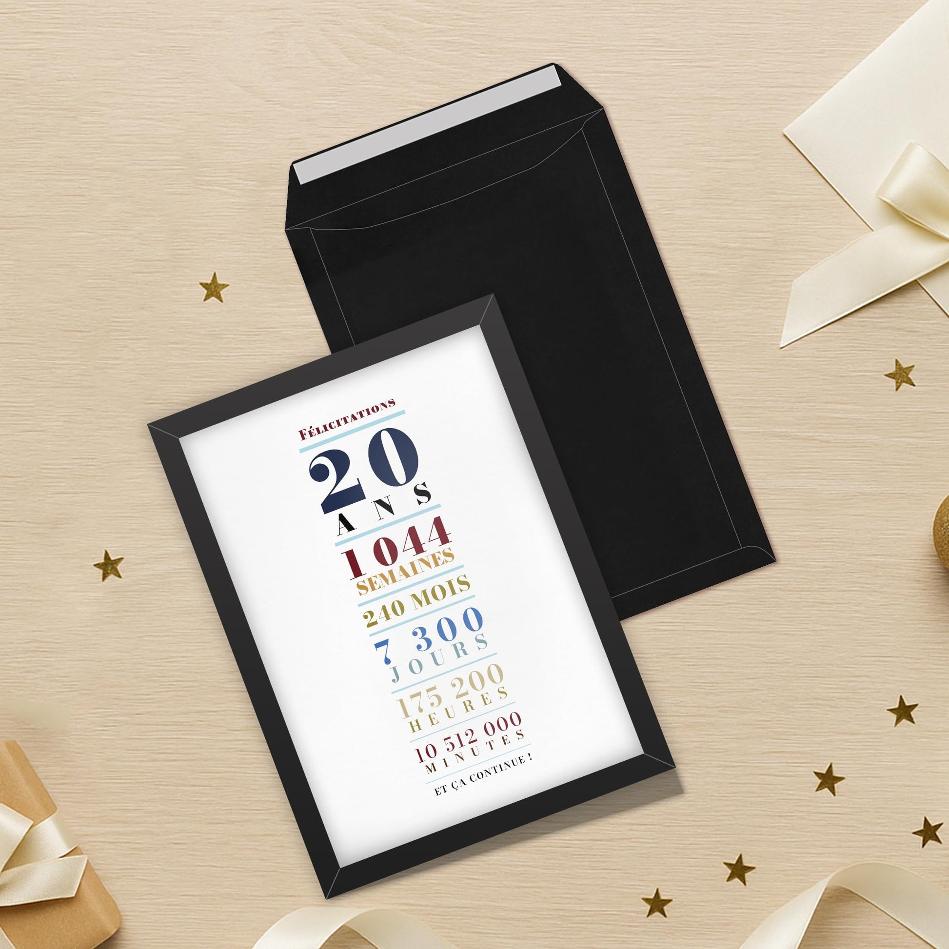 Détails: La carte souvenir personnalisable UTTSCHEID est le cadeau idéal pour célébrer tous les événements marquants : anniversaires, mariages, départs en retraite ou autres occasions spéciales. Avec son élégant format typographique vertical (dimensions A4 : 21 cm x 29,7 cm) et sa qualité premium sur papier épais de 350 gr/m², elle devient un souvenir précieux à conserver longtemps. Livrée avec une élégante enveloppe noire, cette carte souvenir est prête à offrir immédiatement. Vous pouvez opter pour une version avec ou sans cadre, selon vos préférences, afin de sublimer instantanément votre décoration intérieure ou pour créer un cadeau prêt à être exposé. Alternative chic et originale au traditionnel livre d'or, cette affiche permet à chacun d'y apposer ses mots, ses pensées et ses signatures pour créer un souvenir unique et personnel de votre événement. Fabrication française haut de gamme par UTTSCHEID : un gage de qualité, d'élégance et de durabilité. Offrez ou recevez un cadeau mémorable et parfaitement adapté à toutes les occasions spéciales. Disponible avec ou sans cadre, pour s’adapter à toutes les envies et tous les intérieurs.