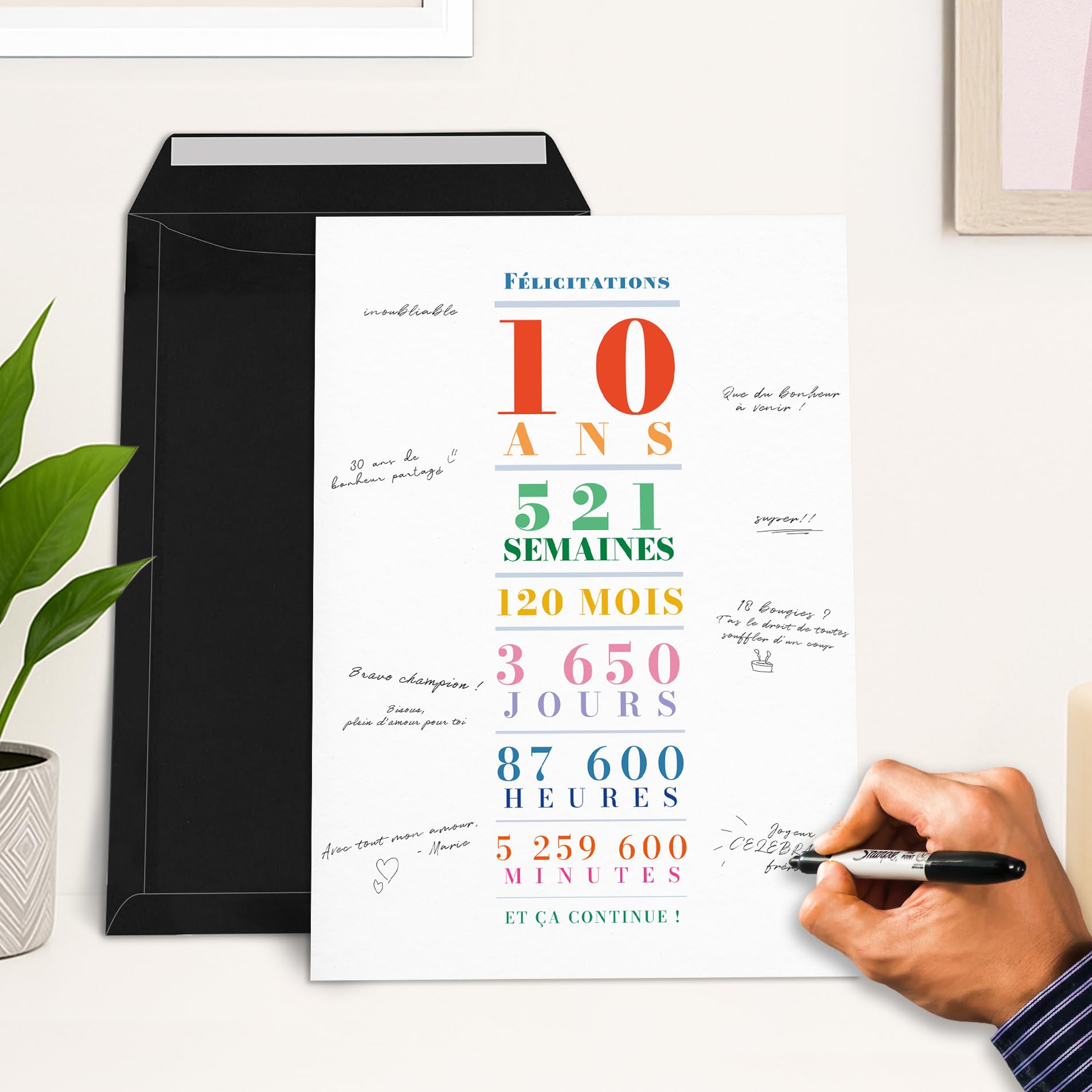 - Enveloppe Noire Incluse : Chaque carte est accompagnée d’une élégante enveloppe noire, prête à offrir ou à expédier directement à vos proches.