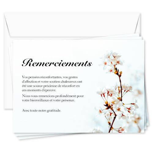 UTTSCHEID Cartes Remerciement - Deuil – Condoléances - Décès Obsèques - Cartes avec Enveloppes – Format A6 (10,5 x 14,8 cm) - Fleur de cerisier