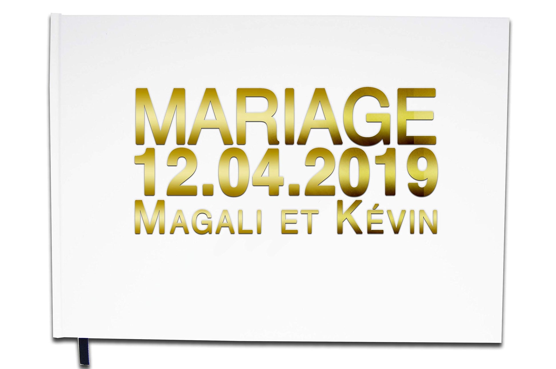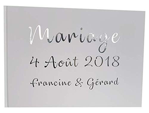 Détails: Livre d'Or Mariage Personnalisé - Lettres chromées ou dorées -100 pages - Qualité premium - Uttscheid CONTENU : 100 pages, papier extra-blanc 120 g/m² Format paysage Evènement Date Prénom(s)